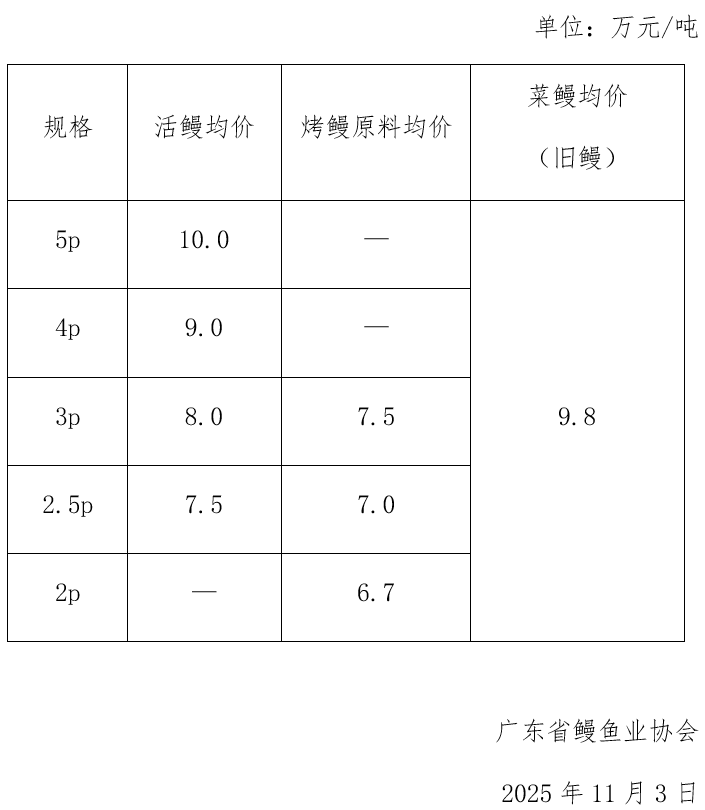 福建美洲鳗鲡市场行情周报由福建省鳗业协会牵头提供,广东日本鳗鲡市场行情周报由广东省鳗鱼业协会牵头提供,由中国渔业协会鳗业工作委员会统一组织发布。